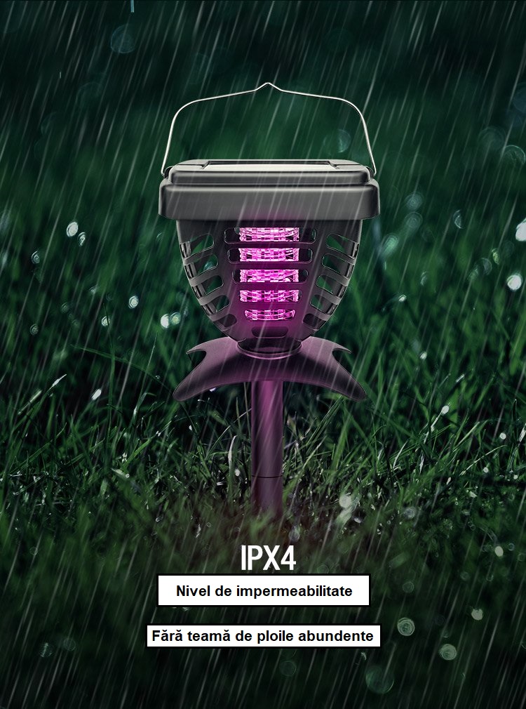 - Luminile LED UV violet atrag țânțarii și alte insecte intră în capcană și ating rețeaua de înaltă tensiune, ceea ce îi ucide imediat.