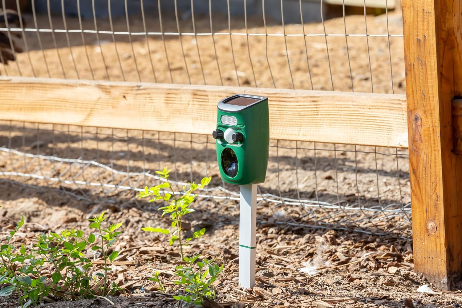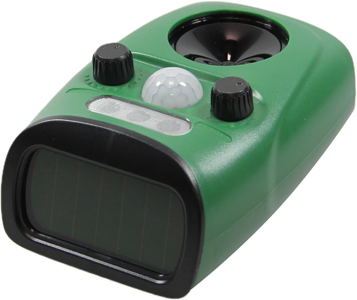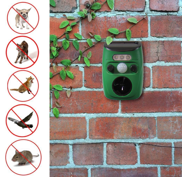 Dispozitiv de îndepărtare a animalelor nedorite precum câini, pisici, păsări, căprioare, etc. ce folosește ultrasunete și flash-uri luminoase.