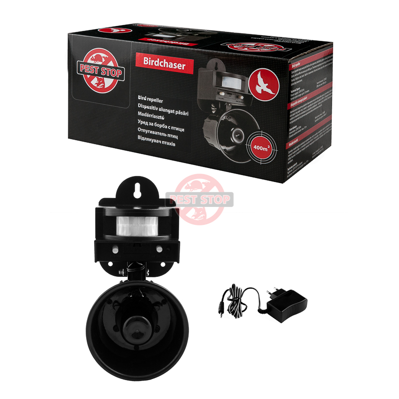 În natură, exista păsări de pradă, care vinează alte păsări şi rozătoare mici. Cele mai raspîndite păsări de pradă sunt - șoimii şi bufniţele. Cele mai multe victime ale șoimilor şi bufniţelor sunt şobolanii, şoarecii şi păsările. Principiul pe care funcționează dispozitivul cu sunet acustic anti-pasăre este bazat pe producerea sunetelor de păsări de pradă - vultur, şoim, bufniţă, în scopul de a speria şi izgoni din gradina sau din ograda vilei Dvs păsările nedorite, cum ar fi vrăbii, mierle, porumbei, ciori, grauri si alte. Această metodă eficientă, şi în acelaşi timp umană vă va permite să scapați nu numai de păsări, ci şi de alte animale periculoase şi nocive, cum ar fi şobolani şi şoareci.